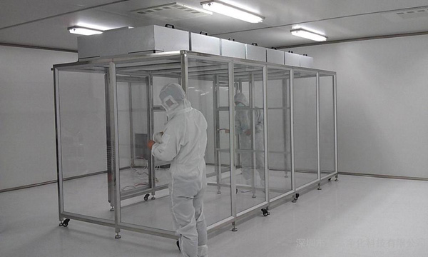 潔凈棚采用工業鋁材(或不銹鋼方通、鐵方通噴塑)作為框架,風機濾網機組(FFU)送風,四周懸掛防靜電垂簾(或鋼化玻璃),其內部凈化級別可達到100-10000級。適用于操作區內局部凈化級別要求高的區域。