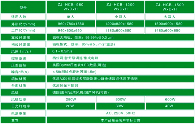 1、采用超薄型的無隔板過濾器,將靜壓箱尺寸縮到最小,配以不銹鋼臺面和玻璃側擋板,使整個工作區顯得寬敞明亮;