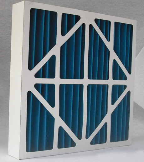 過濾材料是以折疊形式裝入高強度摸且硬紙板內,迎風面積增大,流入的空氣中的塵埃粒子被過濾材料有效阻擋在摺與摺之間。潔凈空氣從另一面均勻流出。因此氣流通過過濾網是平穩(wěn)和均勻的。視過濾濾料不同。它所攔截粒子的粒經從0.5um到5um而不同。過濾效率也不同。